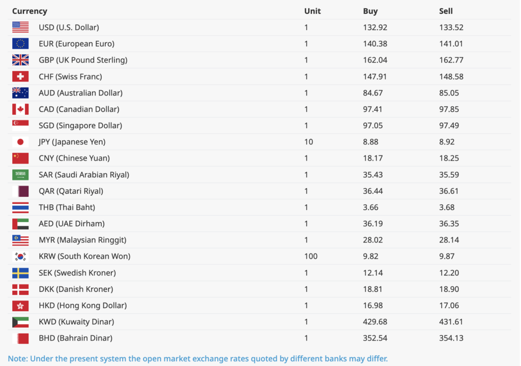 कुवेती दिनार १ को खरिदमा ४२९ रुपैयाँ ६८ पैसा र बिक्रीमा ४३१ रुपैयाँ ६१ पैसा तथा बहराइनको दिनार खरिदमा ३५२ रुपैयाँ ५४ पैसा र बिक्रीमा ३५४ रुपैयाँ १३ पैसा तय गरिएको छ।