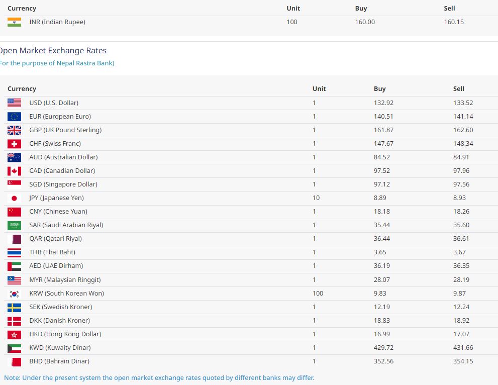 जसअनुसार भारतीय रूपैयाँ एक सयको खरिद दर १६० रूपैयाँ रहेको छ भने बिक्री दर १६० रूपैयाँ १५ पैसा कायम गरिएको छ ।