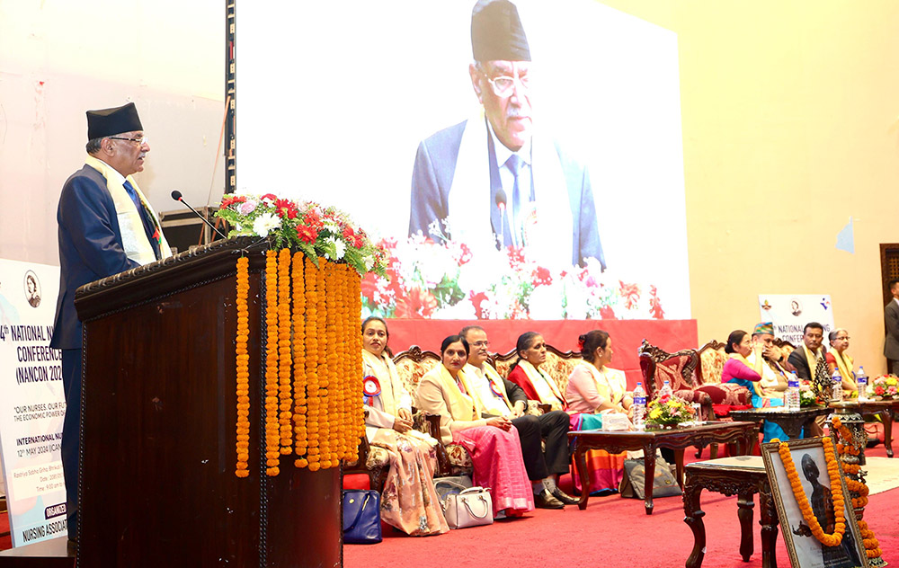 ‘नर्सहरूको सेवा–सुविधामा एकरूपता छैन, निजी अस्पताल, निजी नर्सिङ कलेज, नर्सिङ होमहरूमा  सरकारको न्यूनतम पारिश्रमिकसरह सेवा सुविधाको सुनिश्चिता हुनुपर्छ,’ प्रधानमन्त्री प्रचण्डले भने, ‘उत्पादित जनशक्तिलाई स्वदेशमै रोजगारीको व्यवस्थाका निम्ति आवश्यक नीतिगत प्रबन्ध गरिनेछ ।’