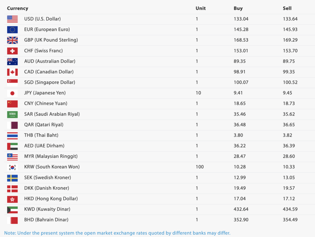 अस्ट्रेलियन डलर १ को खरिदमा ८९ रुपैयाँ ३५ पैसा र बिक्रीमा ८९ रुपैयाँ ८७ पैसा, क्यानेडियन डलर खरिदमा ९८ रुपैयाँ ९१ पैसा र बिक्रीमा ९९ रुपैयाँ ३५ पैसा, सिंगापुर डलर खरिदमा १०० रुपैयाँ ७ पैसा र बिक्रीमा १०० रुपैयाँ ५२ पैसा तथा जापानी येन १० को खरिदमा ९ रुपैयाँ ४१ पैसा र बिक्रीमा ९ रुपैयाँ ४५ पैसा तय गरिएको छ।