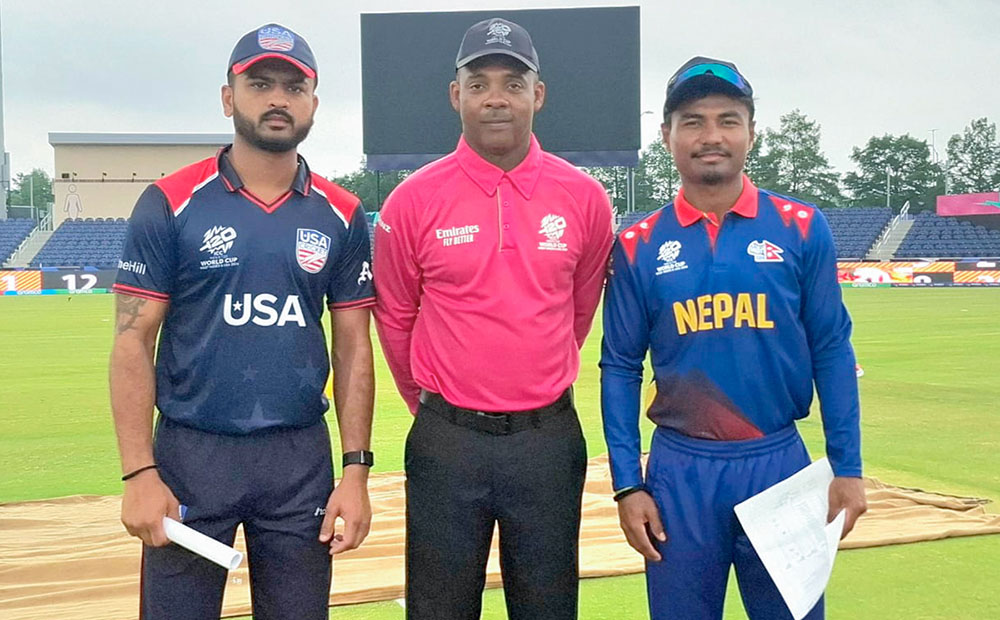 काठमाडौँ । आइसिसी टि-२० विश्वकप अन्तर्गत नेपाल र अमेरिकाबीचको वार्म-अप खेल बर्षाले रद्द भएको छ ।