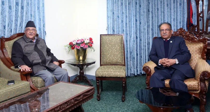काठमाडौँ । प्रधानमन्त्री पुष्पकमल दाहाल प्रचण्ड र प्रमुख प्रतिपक्ष दल नेकपा एमालेका अध्यक्ष केपी शर्मा ओलीबिच भेटवार्ता भएको छ ।
