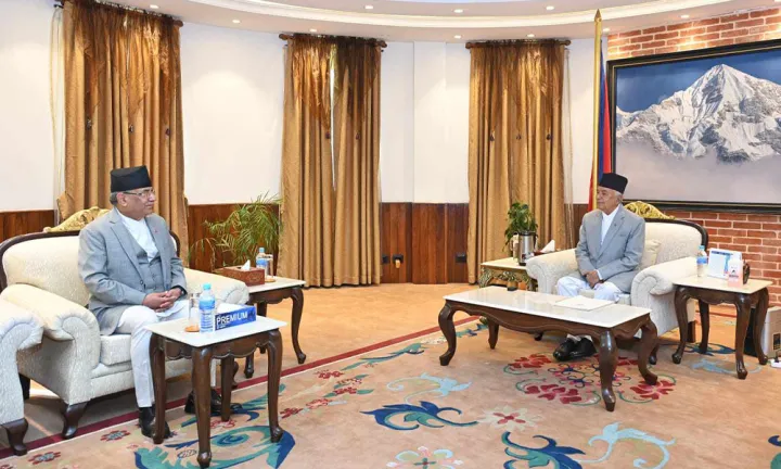 काठमाडौं। प्रधानमन्त्री पुष्पकमल दाहाल प्रचण्ड र राष्ट्रपति रामचन्द्र पौडेलबीच भेटवार्ता भएको छ। मंगलबार प्रधानमन्त्री प्रचण्ड र राष्ट्रपति पौडेलबीच राष्ट्रपति भवन शितल निवासमा भेटवार्ता भएको थियो।