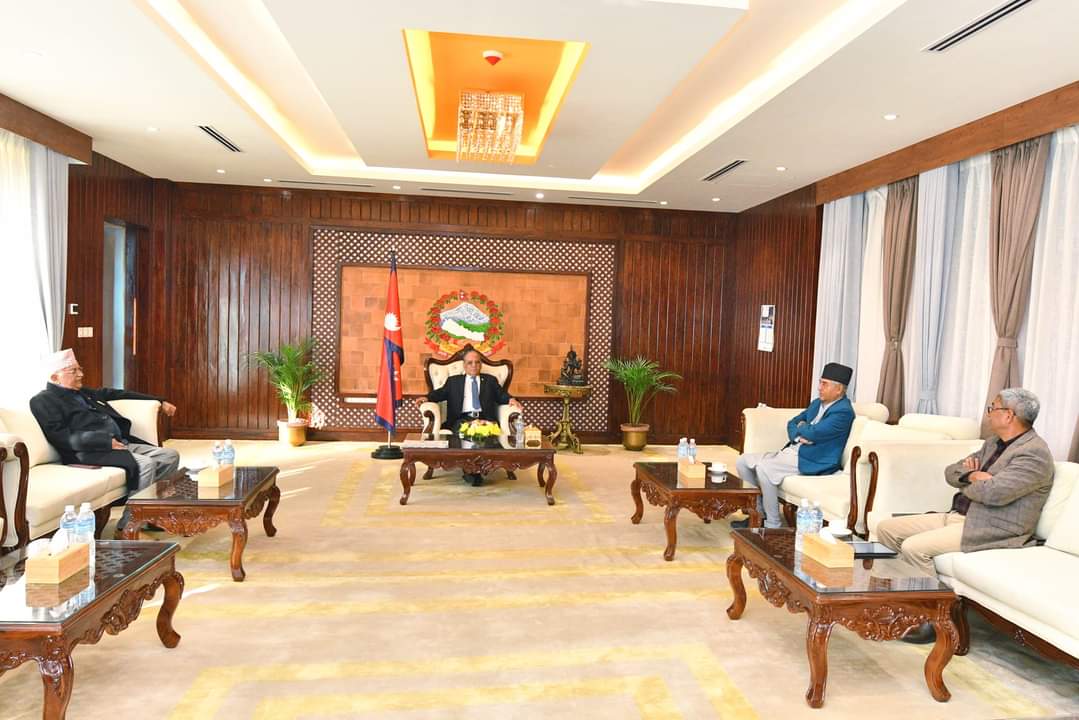 काठमाडौं, ८ पुस । प्रमुख तीन दलका शिर्ष नेताहरूका बिचमा भेटबार्ता भएको छ।