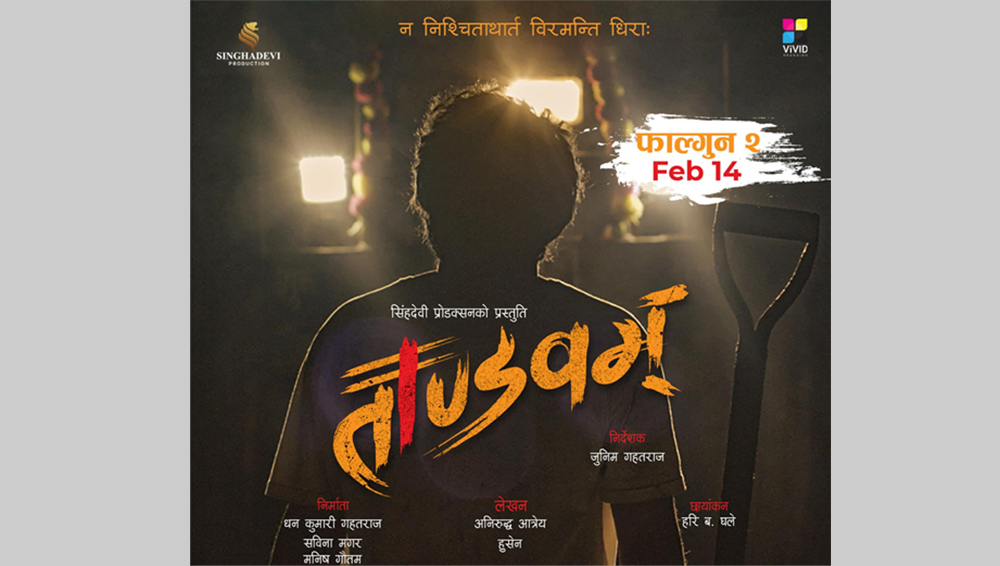 काठमाडौँ । जुनिम गहतराजको डेब्यु निर्देशकीय फिल्म ‘ताण्डवम्’ भ्यालेन्टाइन डेको दिन पारेर आगामी फागुन २ गतेबाट सार्वजनिक प्रदर्शनमा आउने भएको छ । दशैंको अवसर पारेर शनिबार थिम पोस्टर सार्वजनिक गर्दै फिल्मको प्रदर्शन मिति घोषणा गरिएको हो ।