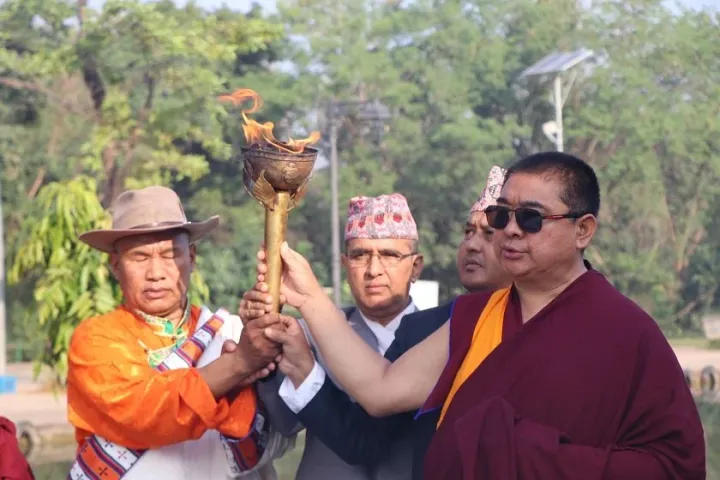 लुम्बिनी विकास कोषका उपाध्यक्ष डा.ल्हारक्याल लामा (खेन्पो छिमे) ले आज लुम्बिनीस्थित शान्ति दीपमा प्रज्जवलन गरेको दीप सगरमाथाको आधार शिविरतर्फ प्रस्थान गर्न दीप हस्तान्तरण गरेका हुन् ।