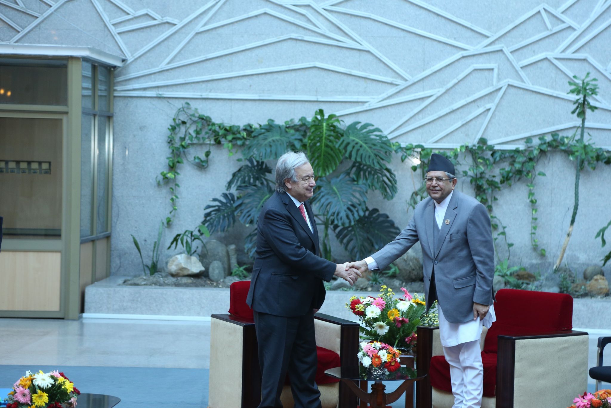 काठमाडौं, १२ कात्तिक । नेपालको भ्रमणमा रहेका संयुक्त राष्ट्र संघका महासचिव एन्टिनियो गुटेरेसले प्रतिनिधिसभाका सभामुख देवराज घिमिरेसँग भेटवार्ता गरेका छन् । सो क्रममा सभामुख घिमिरेले व्यस्तताबीच नेपाल भ्रमण गरेकोमा स्वागत गर्दै नेपाली जनता, नेपालको संसद र व्यक्तिगतरुपमा तपाईंको नेपाल भ्रमणको सफलताको शुभकामना व्यक्त गरे ।